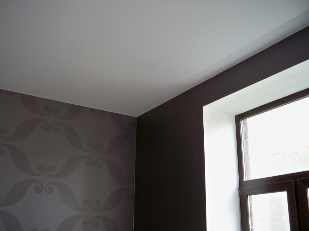 Крепление потолочных багетов производится на стену с технологическим зазором в 3-5 мм между верхней частью галтели и натянутым потолком — так полотно предохраняется от повреждений и образования морщин. В этом случае вся нагрузка по фиксации галтелей ложится на стену. А на ней могут быть обои или шпаклевка (штукатурка), у которых разный коэффициент прочности на отрыв от основания.