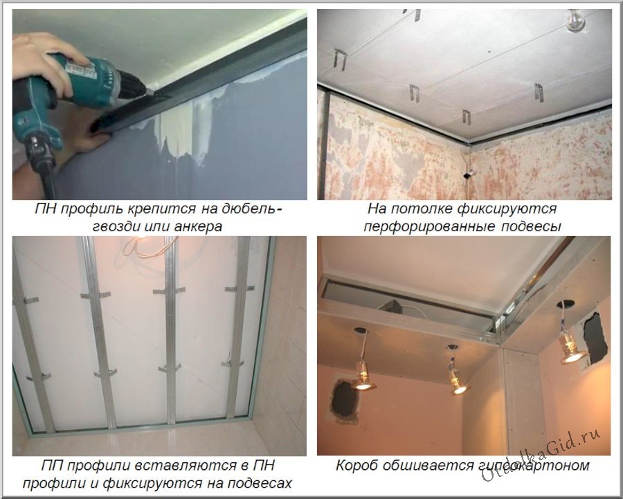 Монтаж потолка в ванной из гипсокартона