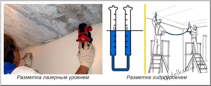 Разметка потолка и крепеж направляющих