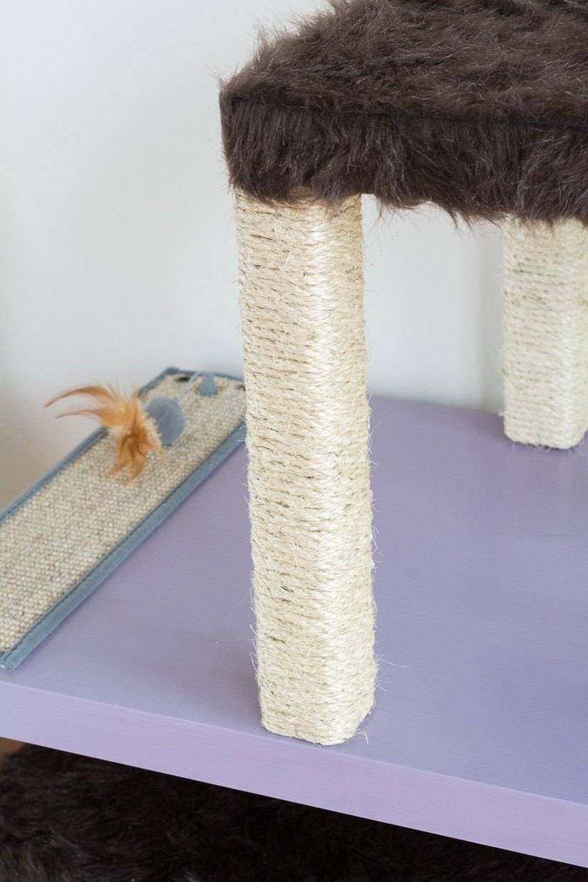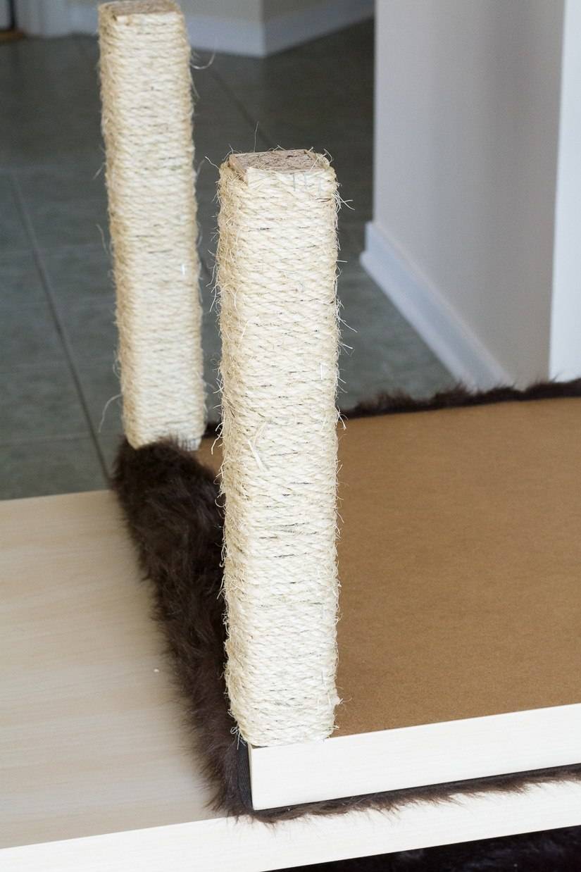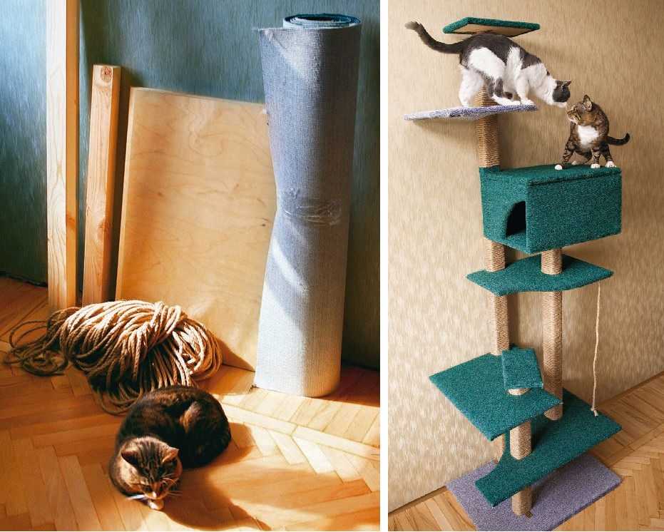 Важно лишь уяснить, что она должна быть достаточно жесткой, чтобы выдержать вес питомца и его игривые шалости, а также необходимо наличие собственно элементов для того чтобы точить когти. Не лишним будет включение в конструкцию 1-2 платформ для отдыха котика