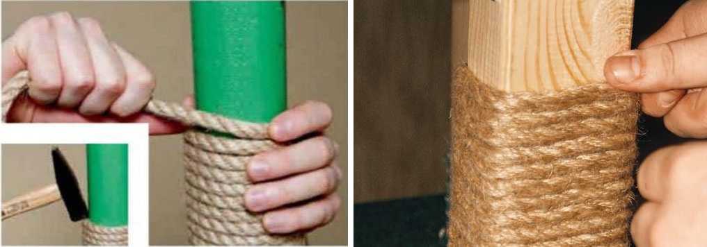- Слабый и тонкий шнур лучше полностью удалить с вертикальных столбиков и заменить его джутовым канатом.