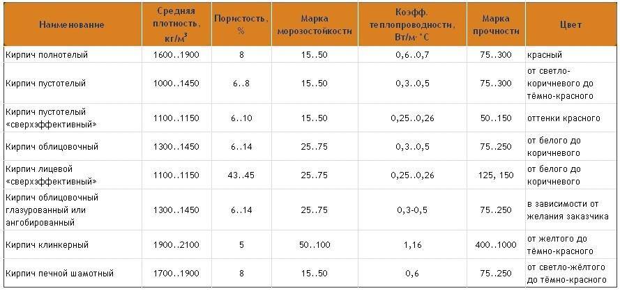 Также стоит учитывать, что разные виды кирпича имеют отличную плотность и пористость, бывают пустотелые и такая разновидность, как полнотелые. Пустотелый кирпич обладает меньшей теплопроводностью