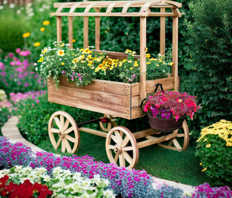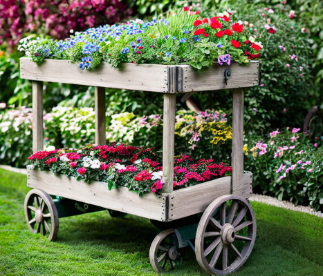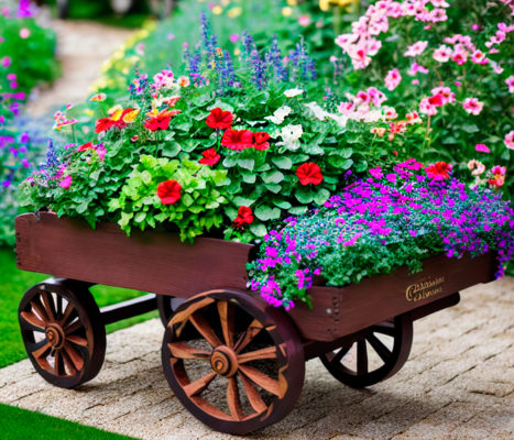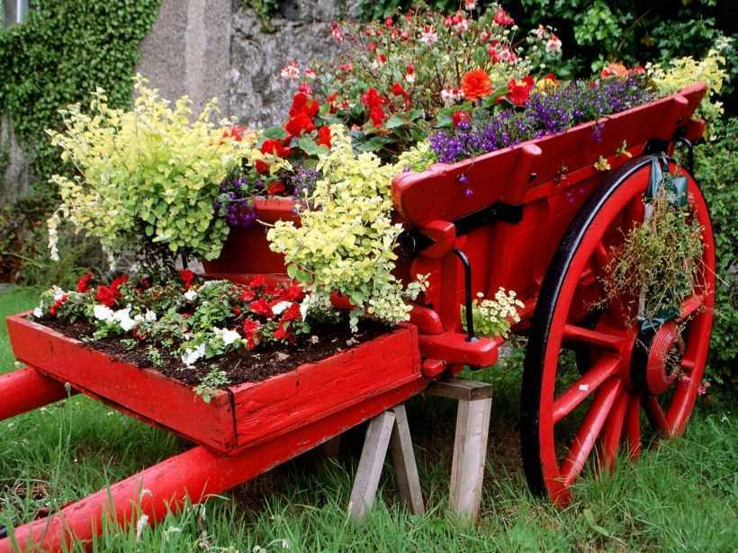 Шикарная клумба в телеге