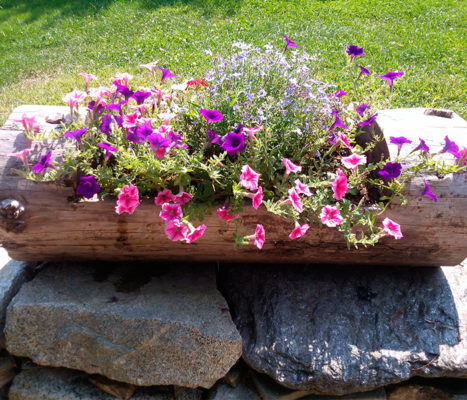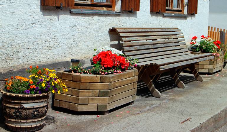 Для деревянных цветников впору пряные травы, что растут кустиками. Также уместны цветы: бархатцы, гвоздики, анютины глазки.