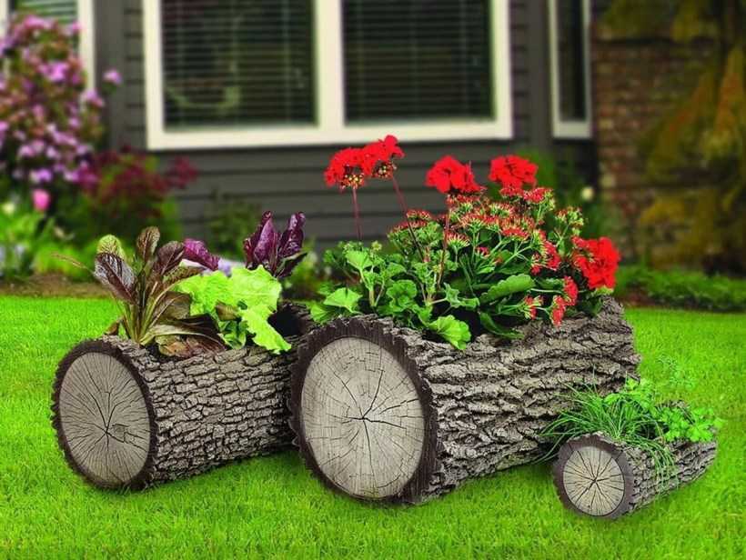 Необычные деревянные клубы из бревен сооружают на даче. Потребуется стамеска вместе с другими приборами, чтобы выдолбить средину сруба. Затем проводят ее обработку спецсредствами и наполняют землей. Теперь очередь высадить любимые растения.