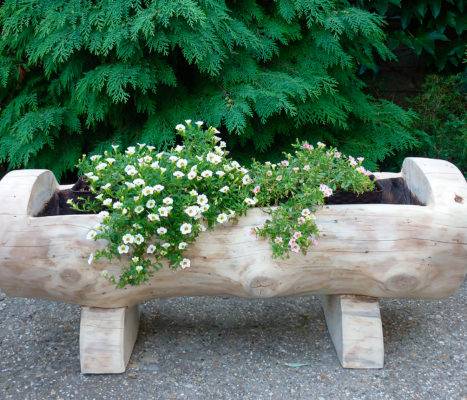 Бревно можно приобрести в магазине строительных товаров. В спецмагазинах дачники найдут цветочницы для посадки растений, сделанные из специально обработанных бревен.