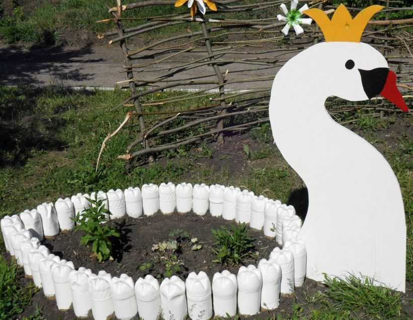 Пластиковые или стеклянные бутылки можно вкопать донышками вниз и выложить с их помощью любую понравившуюся форму.