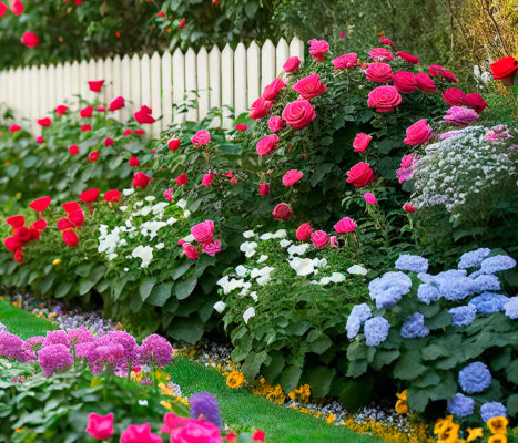Новичкам стоит начать с простого цветника – многоцветника. Это простой вариант, но в период цветения выглядит великолепно. К распространенным вариантам относится мини-розарий, в котором может быть несколько сортов роз.