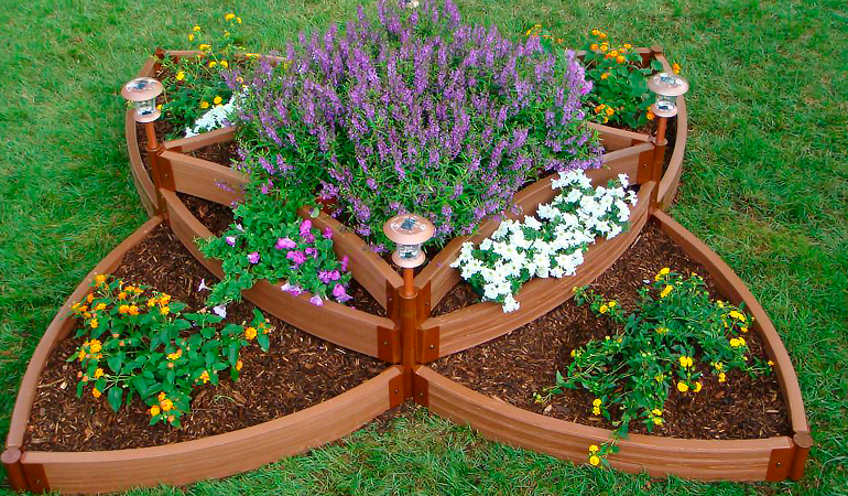 для цветников форма не важна. При этом конструкция может приобретать самые разнообразные конфигурации.