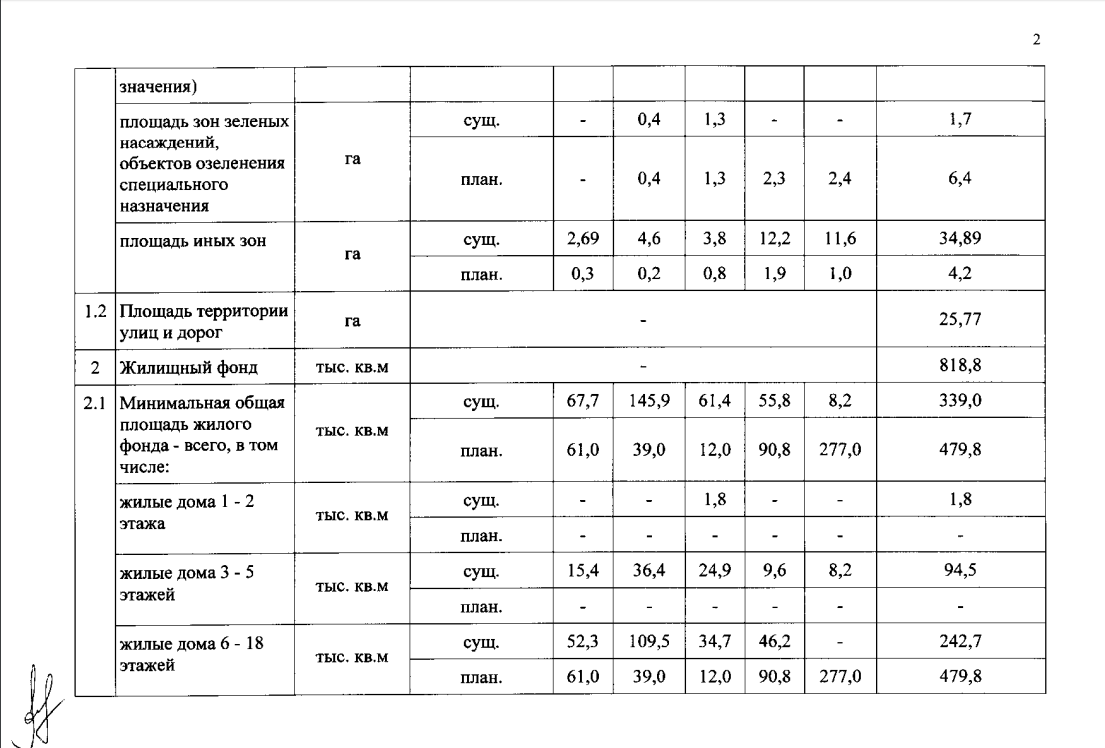 В приложениях к такому Постановлению содержится подробное описание основных показателей территории (технических и экономических):