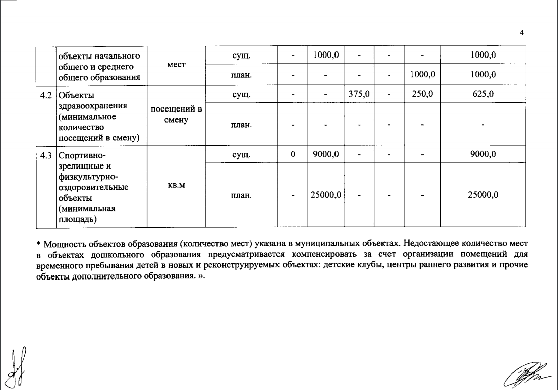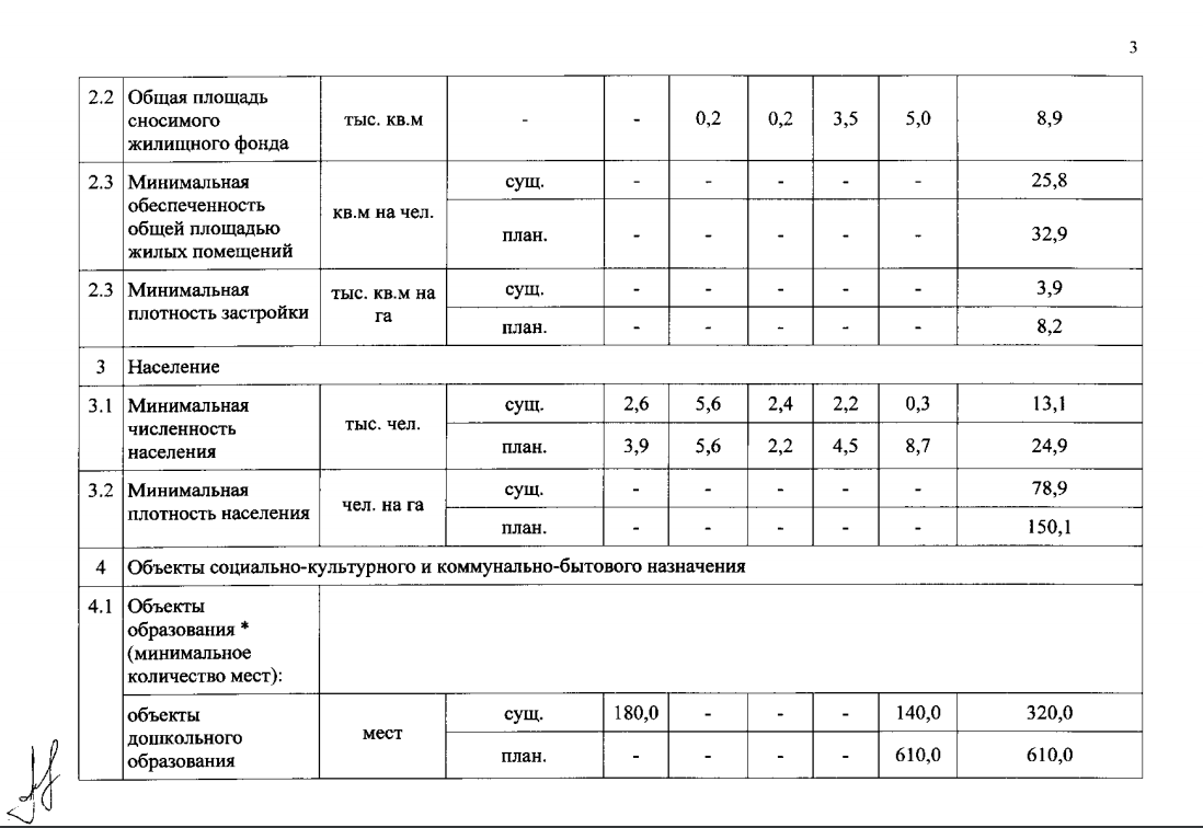 - данные по объектам, относящимся к образовательной сфере (места, посещения в смену, минимальные площади);