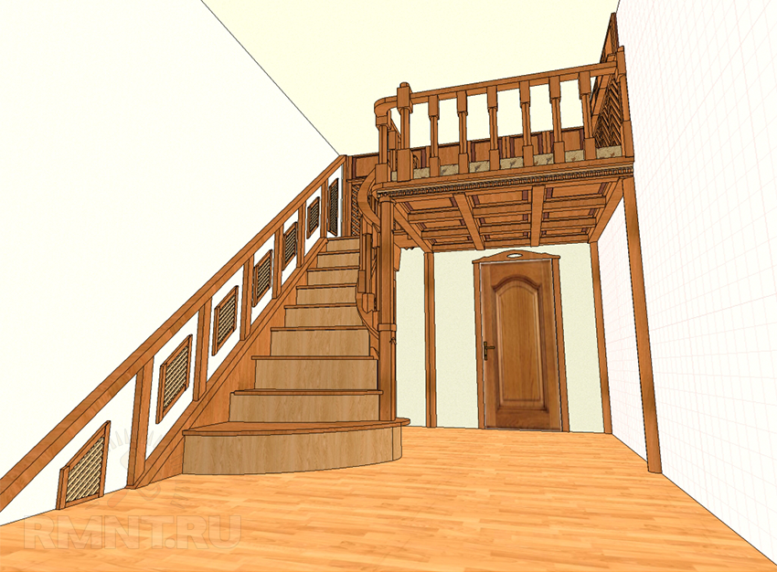 - осталось сделать и установить перила. Это наиболее сложный этап работ, так как поручни необходимо сделать криволинейными, а балясины выточить из цельного куска материала.