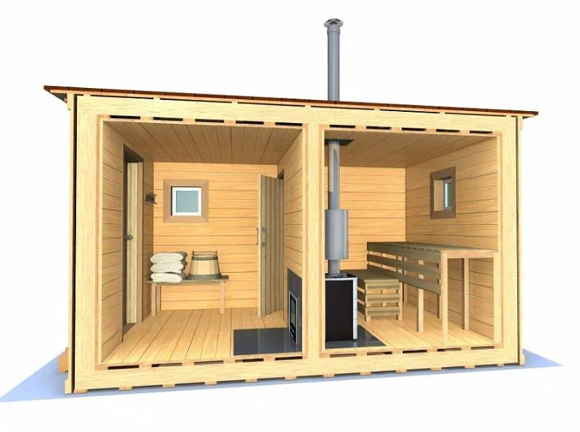 - простым и предусматривать наличие только двух комнат: парной и раздевалки;