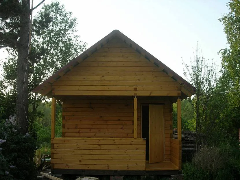 - Построить можно за день, при этом корпус бани лучше всего делать из сосновой доски – сороковки;