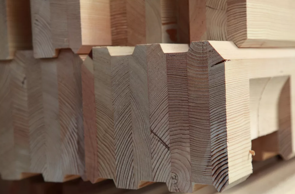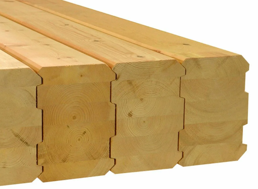 В отдельную группу можно выделить клееный профилированный брус. Его делают не из целого массива, а из нескольких слоев дерева.