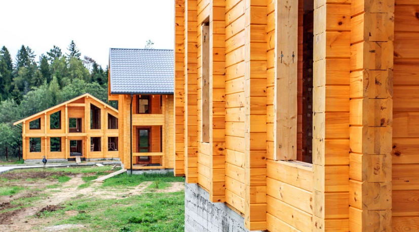 Заготовки склеивают между собой, только после этого наносят резьбу для сцепления профиля друг с другом. Клей отвечает всем стандартам безопасности, поэтому опасаться за потерю экологичности не стоит. Зато в дома из этого материала можно въехать почти сразу после их строительства.