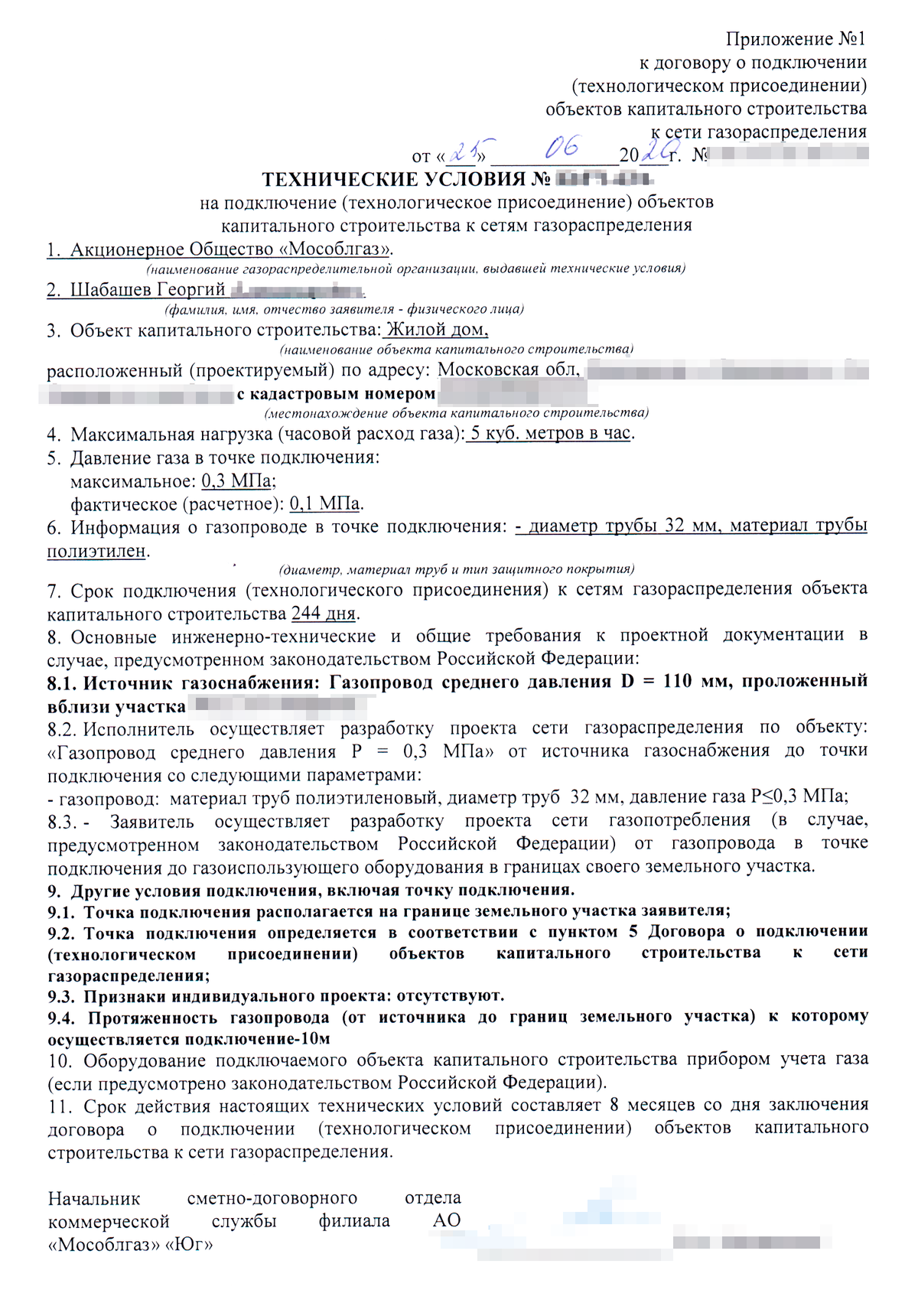 - Технические условия действуют лишь в определенный период и подключение к трубе должно производиться именно в этот период (на протяжении 3 лет), а не когда в трубе уже появится газ.