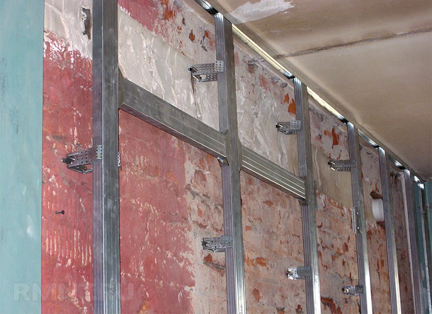 Для потолочных, стеновых конструкций и перегородок действует разный подход к сооружению каркасной системы. Обшивка стен ставит своей целью выравнивание плоскостей для дальнейшей работы и обеспечение их требуемым сопротивлением продавливанию. Каркас в этом случае служит своего рода базой для обшивки, сохраняя устойчивость к фронтальному давлению и поддерживая внушительный вес листов обшивки.