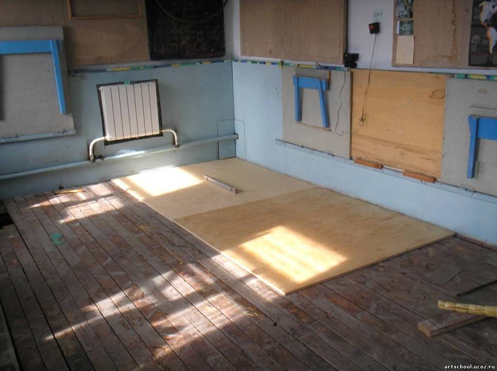 - Доски пола из-за коробления имеют волнистую поверхность, такие места лучше зашпаклевать и отшлифовать.