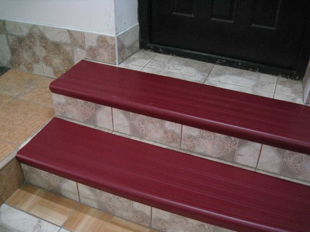 Довольно практичными и не менее привлекательными по сравнению с предыдущими видами считаются полимерные накладки. Их нескользкая структура способствует безопасности передвижения по ним даже при условии оледенения ступеней.