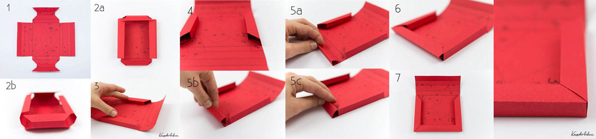 с верхней и нижней стороной делаем то же самое. В результате у вас получится сложенная коробочка, в которую можно вставить любой рисунок. Если нужно, наклейте на нее дополнительные детали, чтобы сделать ее наряднее.