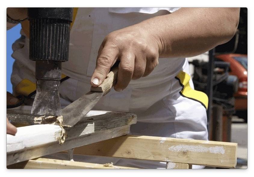 удаление прежнего покрытия до основания древесины, счищается специальными методами;