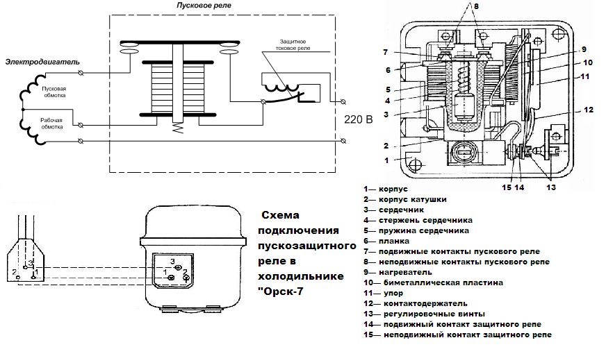 Настоящее сердце всей системы — компрессор. Он обеспечивает циркуляцию хладагента по множеству тонких трубок, часть из которых можно увидеть на задней внешней стенке холодильного шкафа. Другая часть скрыта под панелью внутри камеры в современных моделях, но в старых рефрижераторах они образуют стенки морозильного отделения либо просто закреплены на потолке камеры. Во время работы компрессор сильно нагревается, как любой двигатель, и должен время от времени отдыхать. Чтобы он не вышел из строя от перегрева, внутри находится реле, которое при достижении определенной температуры двигателя размыкает электрическую цепь. В этот момент компрессор выключается.