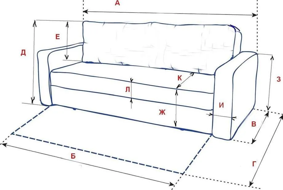 - замерить ширину и длину каждого диванного элемента, который подлежит отделке тканью;