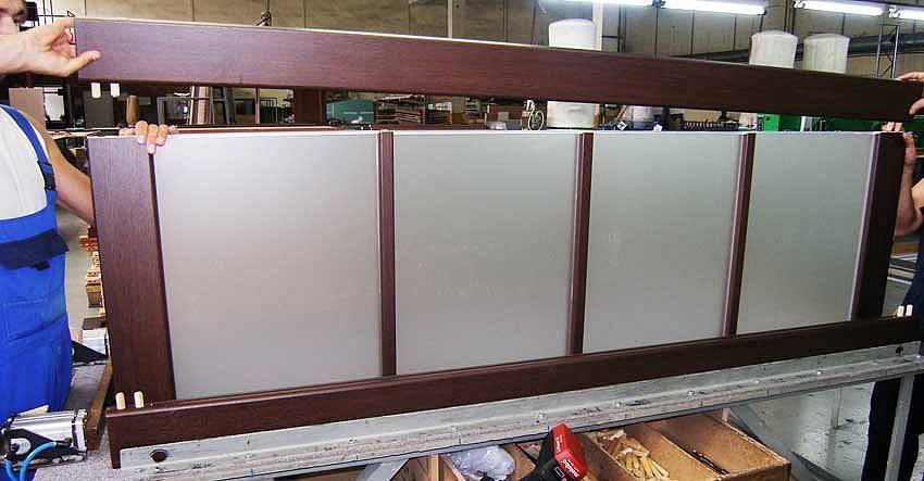Новая стеклянная вставка в таких изделиях устанавливается в просвет, заранее обработанный герметиком. Если это необходимо, можно использовать уплотнитель стекла. Сверху устанавливаются штапики.