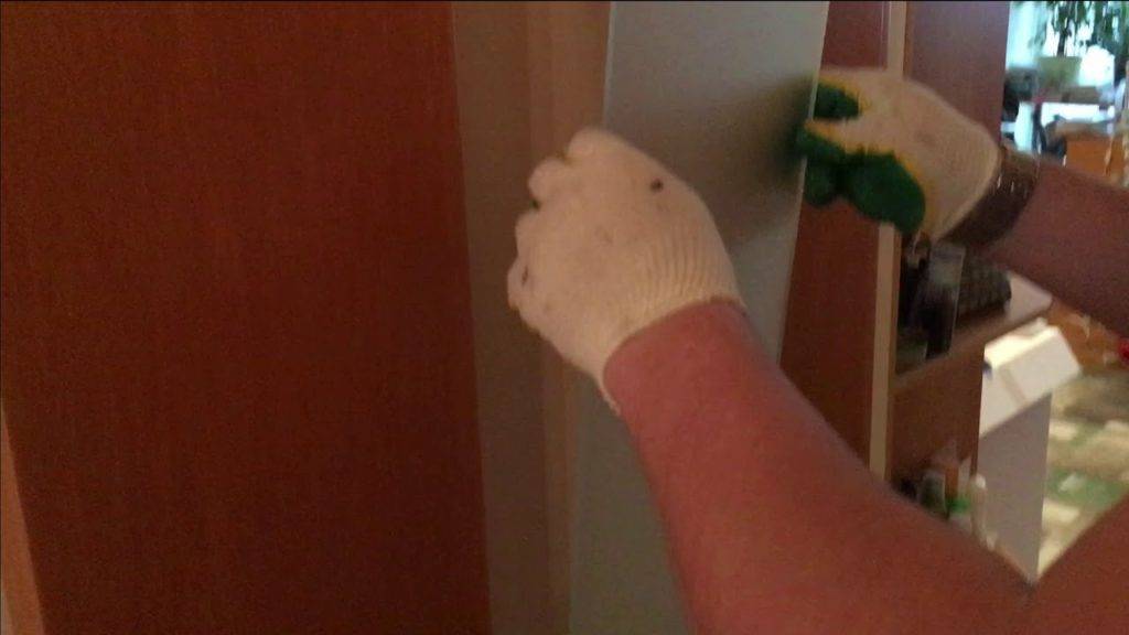 Важно выполнять ремонт двери на этом этапе с особой осторожностью, в перчатках и в обуви
