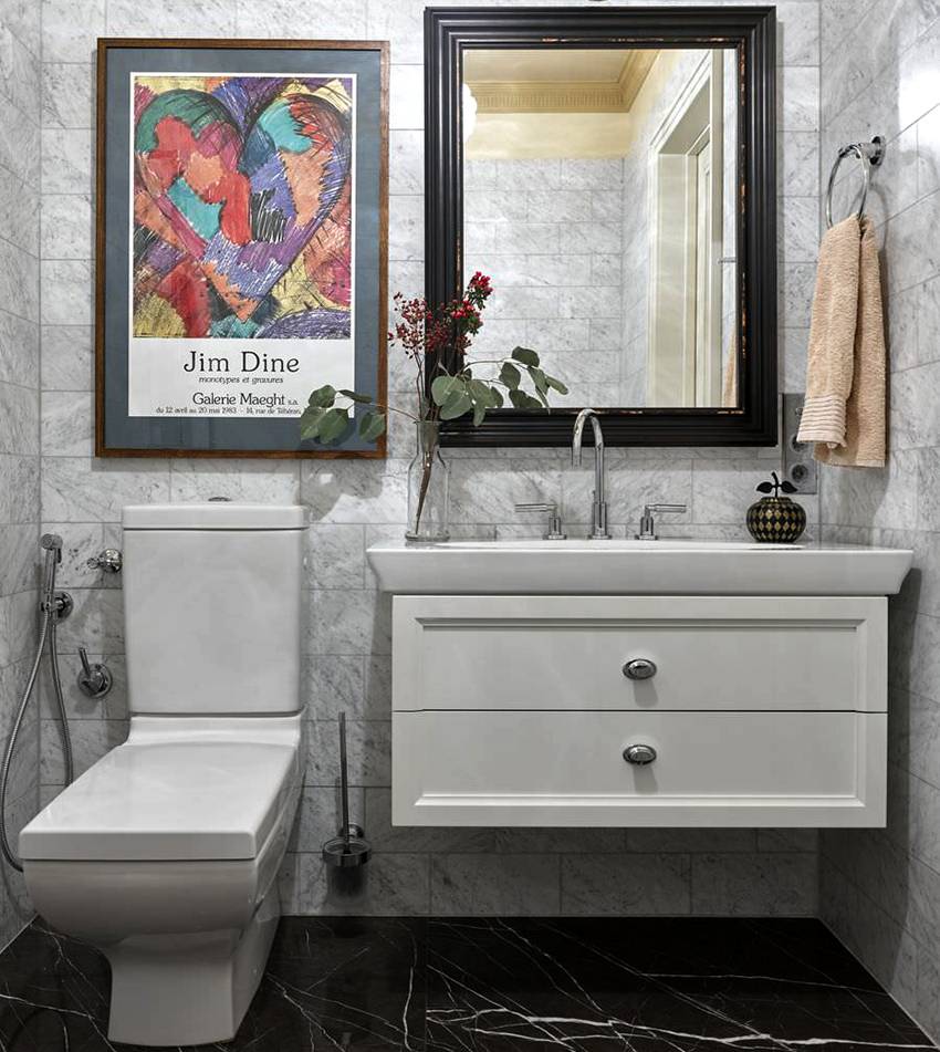 Просторные туалеты позволяют установить не только раковину, но и вместительный шкаф или тумбу