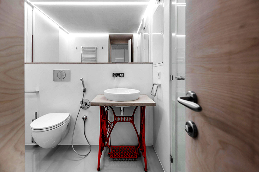 Нередко отопление и счётчики на воду обустраиваются в туалете. Они тоже должны быть закрыты в специальном шкафу. От данного решения интерьерное пространство выиграет.