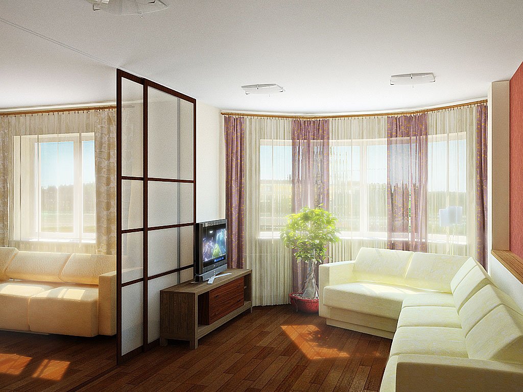 Такой вид планировки актуален в том случае, когда небольшого размера кухни соседствуют с одной из двух жилых комнат и настойчиво требуют расширения. Несущая стена при этом не затрагивается, поэтому никаких сложностей с утверждением такого ремонта возникнуть не должно.
