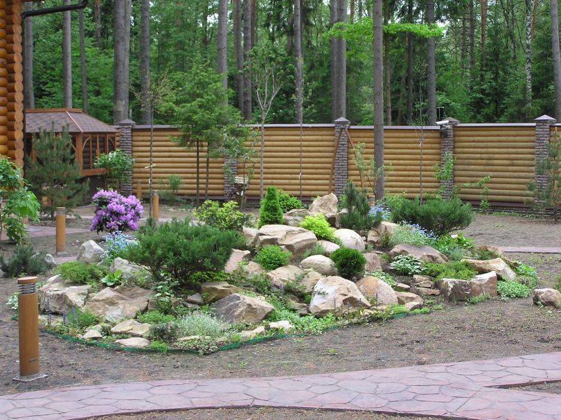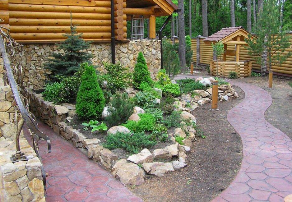 рокария не редко укрепляют углы пешеходных дорожек, устраивают уютные зоны