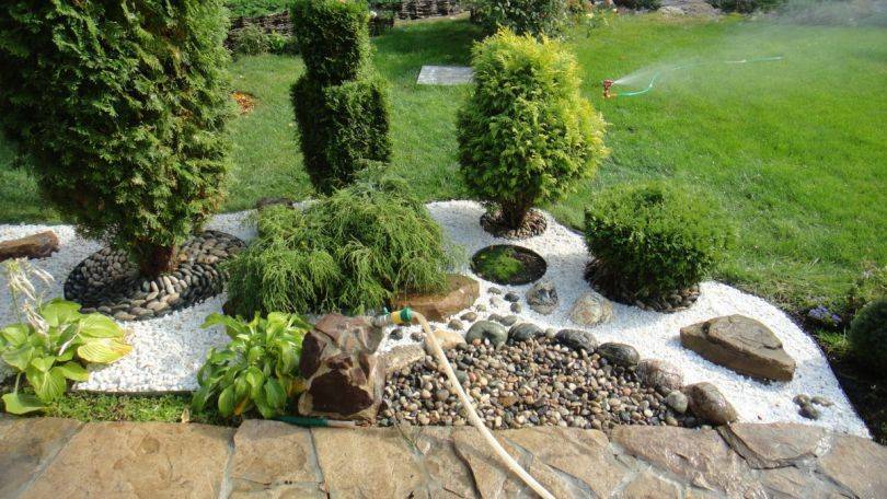 Плоский. Для его обустройства подойдёт участок земли с идеально ровной поверхностью. Небольшие перепады по высоте можно нивелировать при помощи подсыпки. Как правило, для каменных садов плоской формы используют обширные территории.