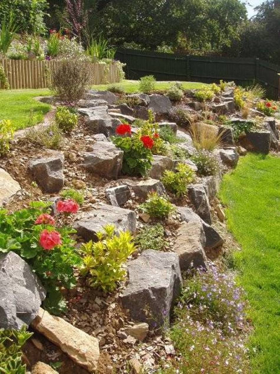 Такой рокарий идеален для разделения неровного участка на разноуровневые зоны