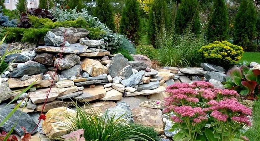 Еще одна важная особенность, это рельеф местности. Обычно альпинарий создается в виде холма (возвышенности), который оформляется ярко цветущими неприхотливыми растениями.