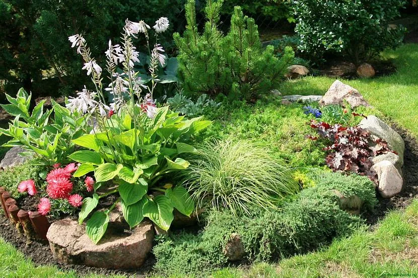 Что касается растений для оформления каменной клумбы, здесь достаточно высадить 10-15 разных хвойников, почвопокровных цветов и несколько кустарников. Особой популярностью среди садоводов пользуются различные луковичные, злаки и папоротники.