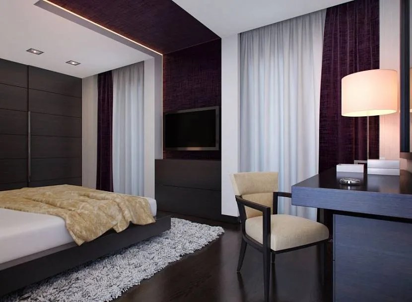 Существует общее правило: выбирается предельно насыщенный, темно-фиолетовый цвет – пропорционально усиливается освещение, особенно локальное. С помощью грамотного подбора светильников, специализированных схем освещения создается потрясающий светодизайн, способный менять комнату кардинально. При выборе теплого или холодного освещения – воспользуйтесь специализированными колористическими таблицами, чтобы выбранные оттенки смотрелись наиболее выигрышно. При одинаковом теплом освещении оттенки преобладающей красной гаммы (розовато-лиловый, баклажановый) останутся в выигрыше, холодные выглядят неестественно (индиго, темно-пурпурный).