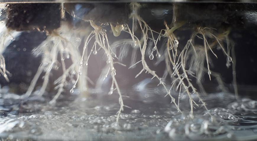 Но только питания недостаточно. Корневой системе растений необходим кислород. И если их просто опустить корнями в раствор, они могут загнивать, перестать развиваться, погибать. Поэтому их помещают в нейтральный субстрат, смачиваемый питательной жидкостью, и с помощью специального оборудования обеспечивают подачу воздуха.