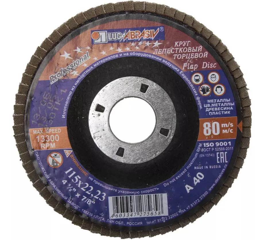 Шлифовальный круг имеет лицевую и обратную стороны. Лицевой стороной считается та, на которой нанесена маркировка и фирменный рисунок производителя. При установке на болгарку лицевая сторона должна располагаться сверху.