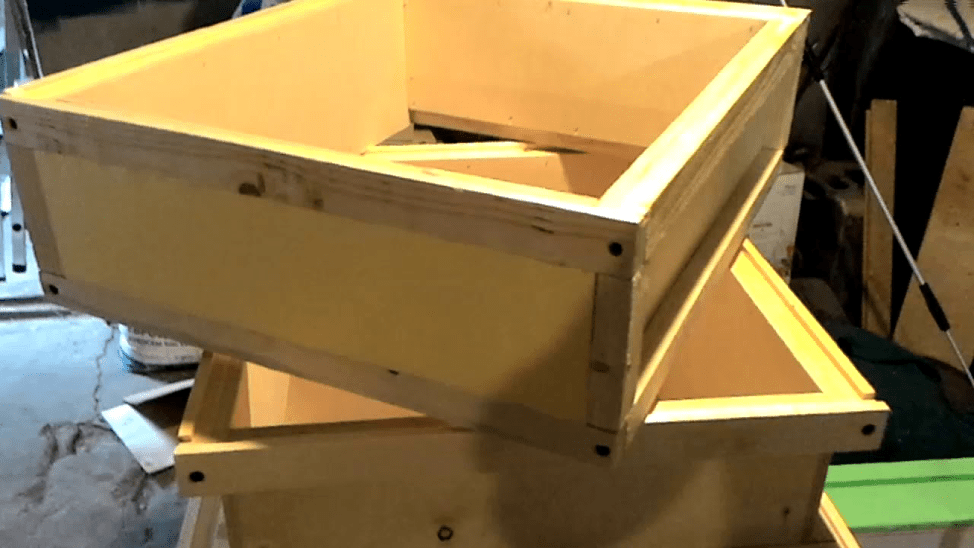 Можно собрать из фанеры несколько корпусов, магазинов своими руками: чертежи одной детали используются для изготовления всех таких модулей. Их строение одинаково для выбранного типа ульев, чтобы облегчить надстройку и замену.