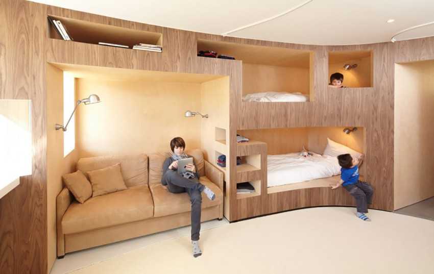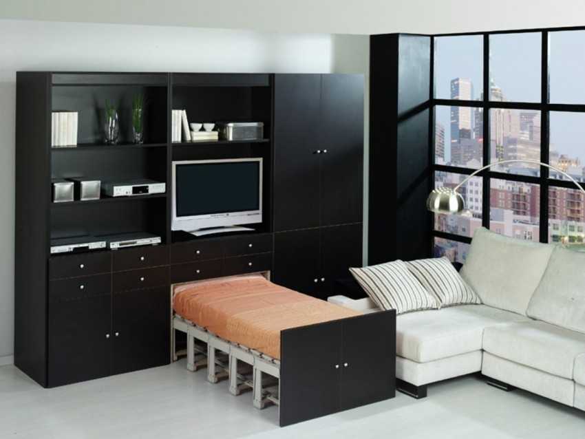 Такие предметы мебели могут одновременно выполнять несколько функций. Единая конструкция может состоять из шкафа, удобных ящиков, кровати, стеллажа. Некоторые модели могут трансформироваться в диван с последующим горизонтальным разложением всех частей.