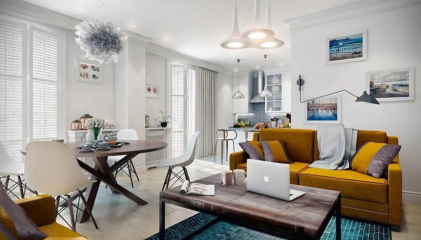 Шведский стиль в интерьере хорошо вписывается в дизайн квартир студий. Все комнаты представляют собой единое пространство, визуально разделенное на отдельные зоны. Каждая деталь отвечает за конкретные функции, поэтому в помещении нет ничего лишнего, только полезные необходимые предметы.