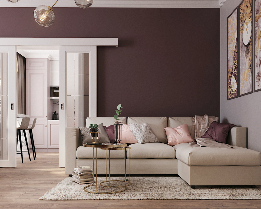 - Применение в помещении теплого и холодного оттенков создает визуальное расширение небольшого пространства.