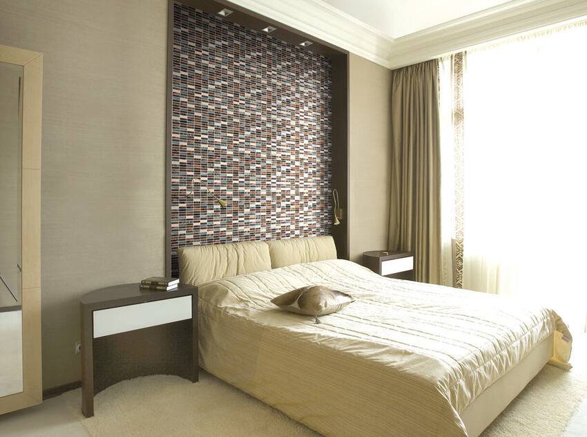 Если комната маленькая, без специфичных архитектурных элементов, а в ее геометрии ничего не цепляет взгляд, тогда от акцентных рисунков и цветов на стенах лучше отказаться и скомбинировать два-три спокойных дизайна. Это могут быть: