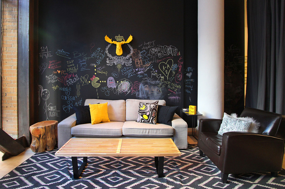 Стены, отделанные маркерными красками, позволяют рисовать на них маркерами. Антибактериальный состав имеет лечебные свойства. Благодаря подобной отделке, под воздействием света воздух в комнате будет самостоятельно очищаться. Такая краска – идеальное решение для аллергиков или маленьких детей со слабым иммунитетом. Магнитные краски содержат в своем составе микроскопические частички металла, что позволяет на стену цеплять магнитики.