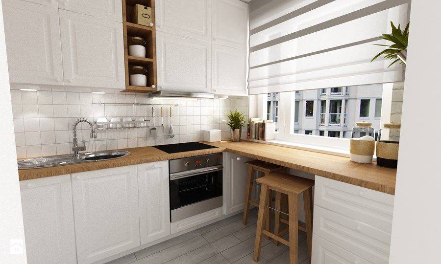 Как видите, каждый сантиметр небольшой кухни можно сделать полезным. Главное – подобрать правильные детали. Найти их легко. Можете поставить под подоконником нишу или открытые ящики.