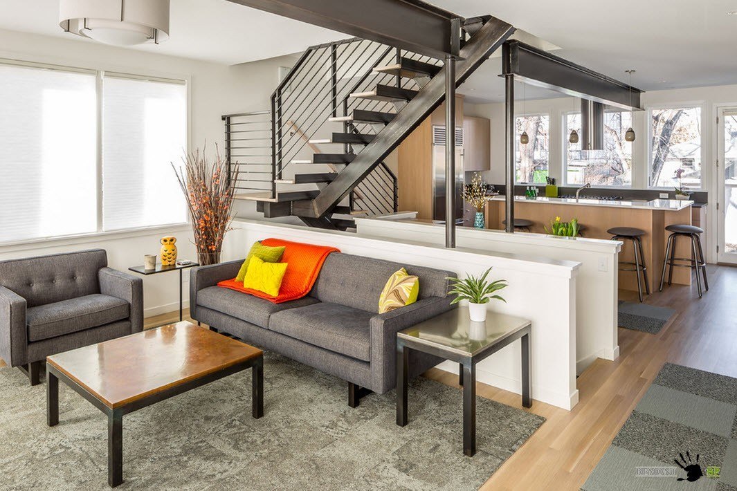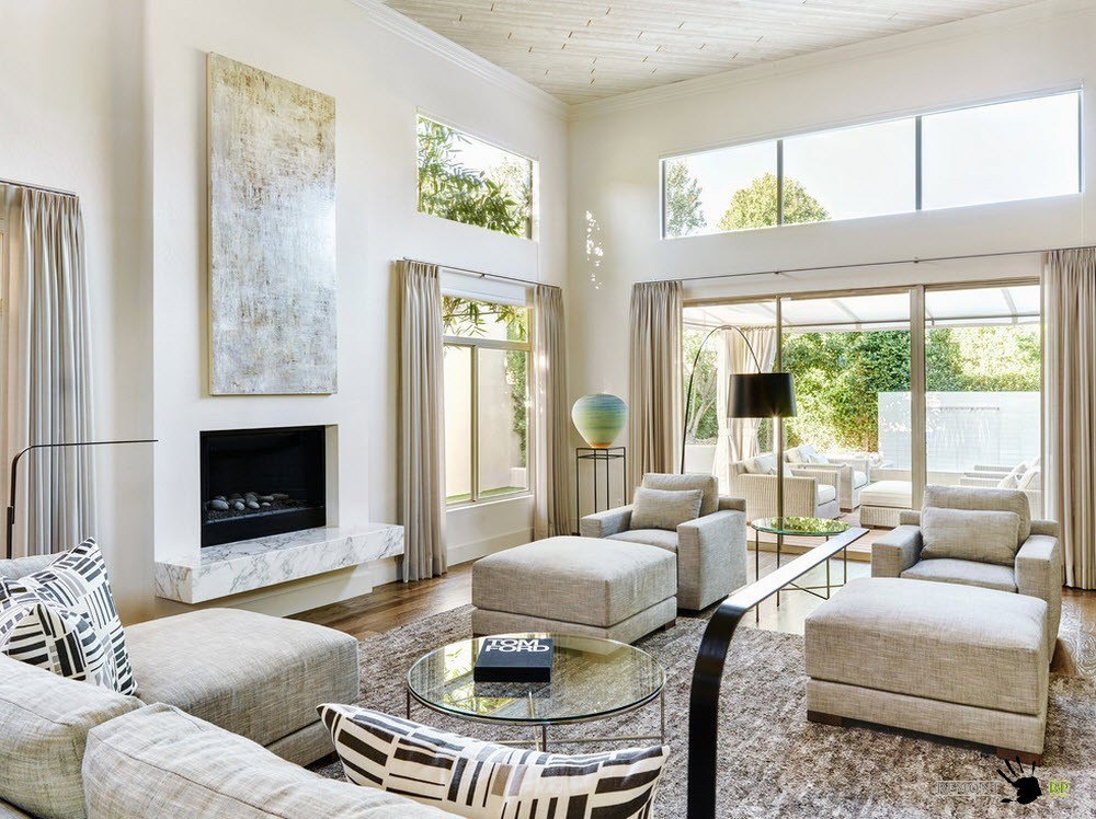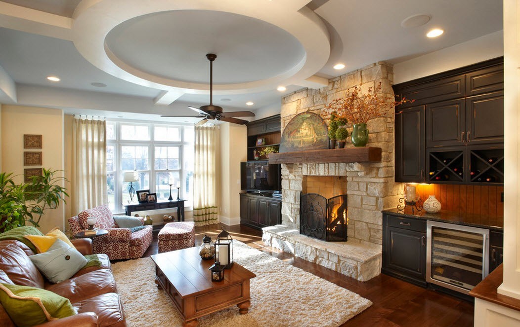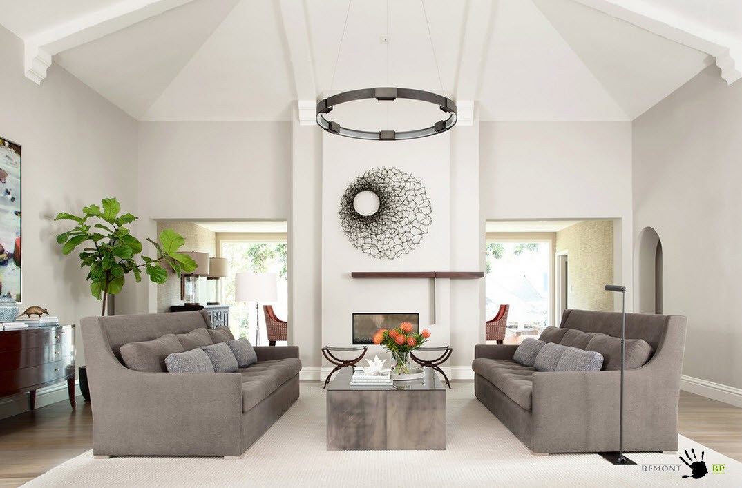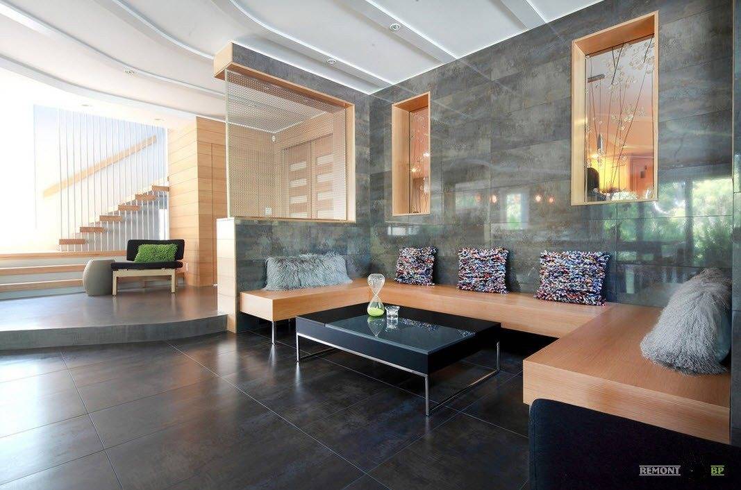 Некоторые дизайнеры при оформлении гостиных используют двухуровневый пол или потолок. Однако метод довольно затратный, поэтому подходит далеко не всем.