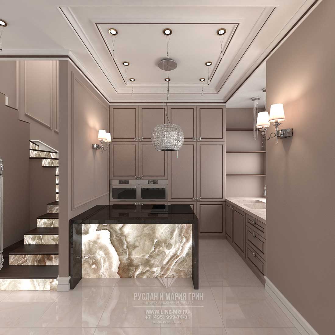 Все мы уже представляем, как выглядит кухня, объединенная с гостиной или столовой. Но доводилось ли вам видеть кухонную зону в прихожей? Вместе с тем, для дизайна таунхауса, недавно разработанного в Студии Руслана и Марии Грин, такое позволило найти выход из ситуации. Заказчица не хотела объединять гостиное и кухонное пространства, а для обустройства отдельной кухни площади не хватало. Тогда наши дизайнеры решили перенести кухню в прихожую. А чтобы совмещение двух абсолютно разных по назначению зон было максимально безболезненным, все помещение выдержано в едином бежевом монохроме.